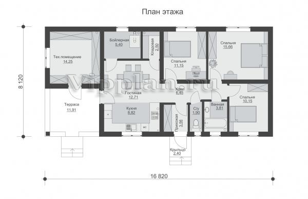 | Размеры дома: | 8.12м×16.82м |