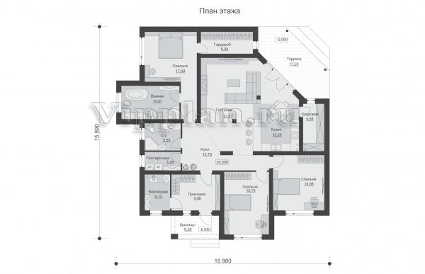 | Размеры дома: | 15.89м×15.98м |